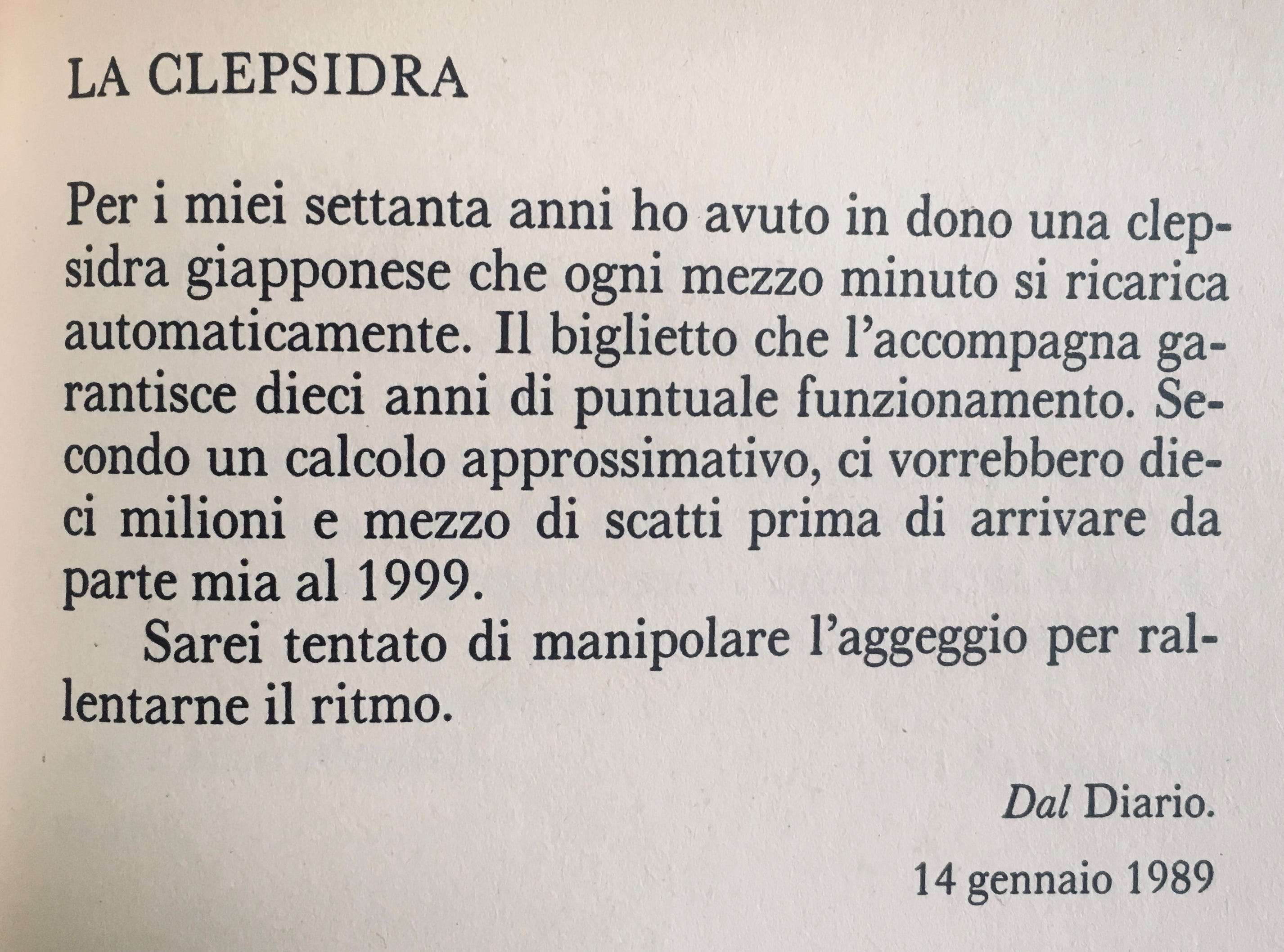 La clessidra si chiama così perché ruba-l’acqua, che è spinta da un piccolo vuoto verso l’altro; ma chi è che ruba l’acqua, se non il tempo?