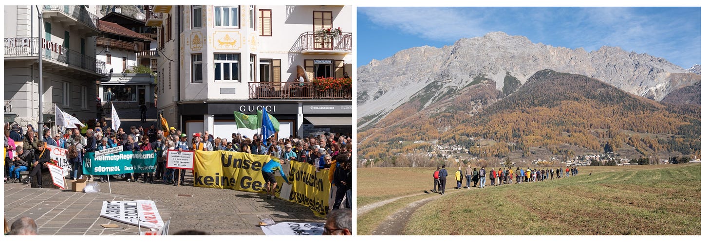 Ogni luogo andava compreso e approfondito per capire in che contesto le Olimpiadi si inserissero: le mobilitazioni locali – al di là del sentimento condiviso di protesta e partecipazione – sono state una grande occasione per farlo. Se quindi tra il 2023 e il 2024 attraversavo alcuni territori per la prima volta, nel corso dei mesi seguenti li ho ripercorsi due, tre, quattro volte, con fini diversi ma sempre con un occhio attento ai cambiamenti e con la macchina fotografica in mano. Con il bagaglio conoscitivo accumulato in quei mesi, insieme a POW Protect Our Winters Italia abbiamo organizzato due giornate di confronto con gli stakeholder locali (o meglio, con quelli che ci hanno risposto) di Rasun-Alterselva (BZ) e di Cortina d’Ampezzo (BL), per capire cosa fosse andato bene, cosa male, e che tipo di confronto ci fosse stato tra istituzioni e popolazione permanente: in entrambi i casi, il confronto non era mai avvenuto.